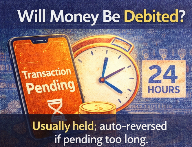 If money is debited while the transaction is pending, it is placed in a holding state, not permanently transferred.